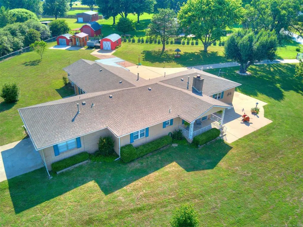 PERFECT HOME BUSINESS LOCATION. NO HOA. Ideal MOTHER-IN-LAW SUITE or Tenant Rental w/bedroom, full bathroom, living area w/optional outside entrance. BEAUTIFUL 1.5 Acres in Town! The PROPERTY is Fully fenced w/ Electric Gate, 3 OUTBUILDINGS (12x16 NEW 2023 w/ Electric, 12x24 Metal w/ Electric, 12x12 Storage Shed). AMPLE PARKING, 2 Car garage w/ extra Storage, ROOF 2017 . Interior Updates Galore: Kitchen Remodel 2023 (NEW cabinets, Fixtures, etc), New Master Bath Remodel 2022 w/ Walk-In Shower, NEW HWT 2023, NEW HVAC 2022, Additional Laundry Room added 2023, New Carpet in Bedrooms 2023, Blown-in insulation added, Replaced plumbing w/ Pex & MORE! Lovely home for entertaining! Large Family Room/Den, Formal Living & a perfect LARGE sun dappled FLORIDA ROOM. Bixby Schools. Possible Commercial value as well.