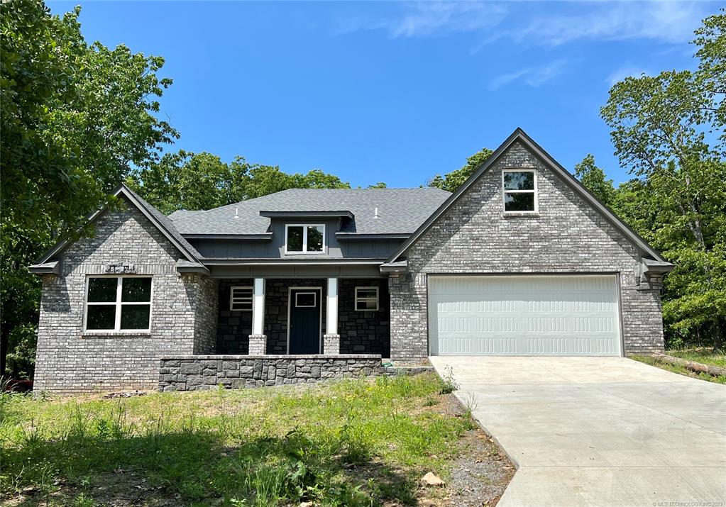 Beauty in Buckhorn II Addition, less than a mile from Lake Tenkiller. 4 bedroom, 2 bath, plus 2nd floor game room/loft. Home features a grand entry with overhead window letting in natural light and boasts an open floor plan, which includes a spacious kitchen with granite countertops, large center island with pendant lighting, lots of counter space, stainless steel appliances, big pantry, and more. The living room is open and bright with large windows to take in the natural light and scenery. The dining room/breakfast nook door leads to the outdoor covered back patio and kitchen for outdoor entertaining. Flex room could be fourth bedroom or study. Master Suite is spacious and private with walk-in shower and whirlpool tub. Everything you need for easy and enjoyable lake living.
