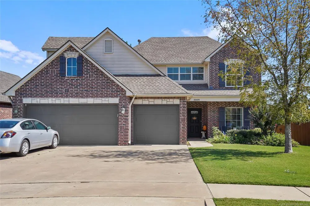 This Trinity Creek home has an amazing view of the neighborhood pond! Come tour this full brick home with 4 bedrooms, 2.5 bathrooms and 3 car garage. The primary suite is downstairs with 3 bedrooms plus a large bonus room upstairs. In 2018 the roof and HVAC were replaced. The HOA includes a neighborhood pool, clubhouse and splash pad. This well maintained home in Broken Arrow school district is a must to view on your home search.