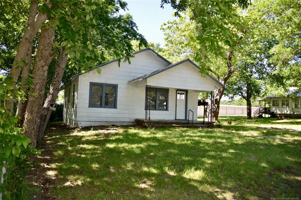 Large shade trees provide a cool spot to sit on the cozy front porch of this 1930's 2 bed/1 bath home. Many updates have been done that you can see like interior and exterior paint, new floor coverings throughout and new bathroom fixtures. The updates you can't see include new water lines from the meter to the house, new electric wiring and electric service and plumbing. Enclosed back porch and full basement. This home is conveniently located in a quiet area that is just minutes from Main St. in Henryetta.